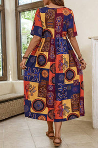 Blue and Denim Dress: Model is 5'8" with a 32" bust, 23" waist and 36" hips. She is wearing a size small.
