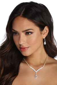 This sophisticated cubic zirconia necklace and stud earrings set will dazzle up the room. The necklace's dainty chain leads to a center teardrop charm. The pack also comes with gorgeous matching teardrop stud earrings so you can wear them together for a beautiful look. Accessorize with this set for brunch with the girls! Pair with a flirty floral dress and cute wedges.