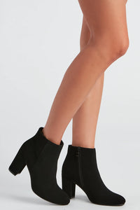 Girl, it'll be love at first sight of you in these basic nubuck booties! They feature an almond toe, block heel, side zipper closure, and a short above the ankle length fit. Complete the look in a new skinny jeans for your next weekend plans!