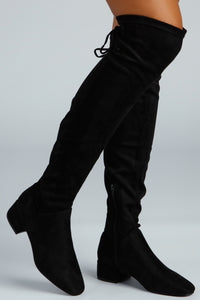 SUEDE SHORT BLOCK HEEL TIE UP THIGH HIGH BOOT (074020168001)