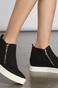 Zip up in these sneakers to create casually cute looks! The sneakers feature a high top, an inner zipper closure, an almond toe, and composed of faux microsuede material. Complete your look with cuffed mom jeans and a chunky cable knit sweater.