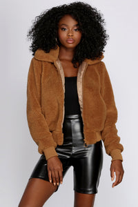 Get all those warm and fuzzy feels, pefect for fall, in this trendy teddy coat! It features a collar, a zip front with an O-ring accent, long sleeves with ribbed cuffs, a ribbed cuffed hem, and an overall relaxed fit. Jacket is composed of a faux fur fabric with a smooth woven lining.